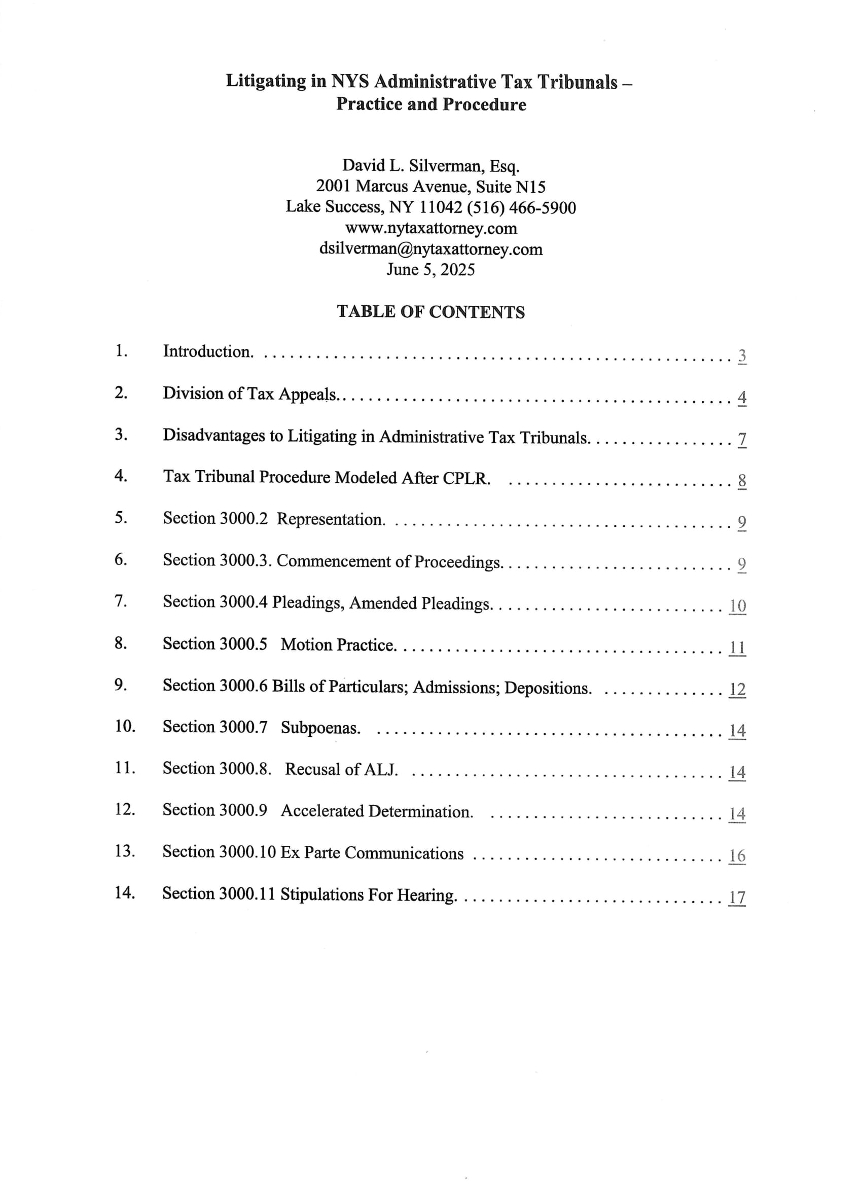 - June 5 NYS Tax Litigation Seminar — Outline May 31, 2025